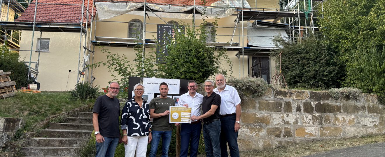 Mit einer Spende in Höhe von 500,00 Euro unterstützt der Heimatkundliche Verein Scheßlitz und Umgebung die aktuelle Sanierung der kleinen Dorfkirche in Roschlaub. Mit viel Engagement und Eigenleistung richtet die Dorfgemeinschaft ihre Kirche wieder her. Der Heimatkundliche Verein freut sich über solche Aktivitäten im Stadtgebiet von Scheßlitz und unterstützt deshalb gerne dieses Projekt.